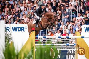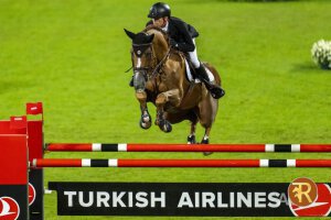 Enige foutloze in de finale van de 7 jarige springpaarden op het WBFSH Studbook Global Champions Trophy in Valkenswaard.